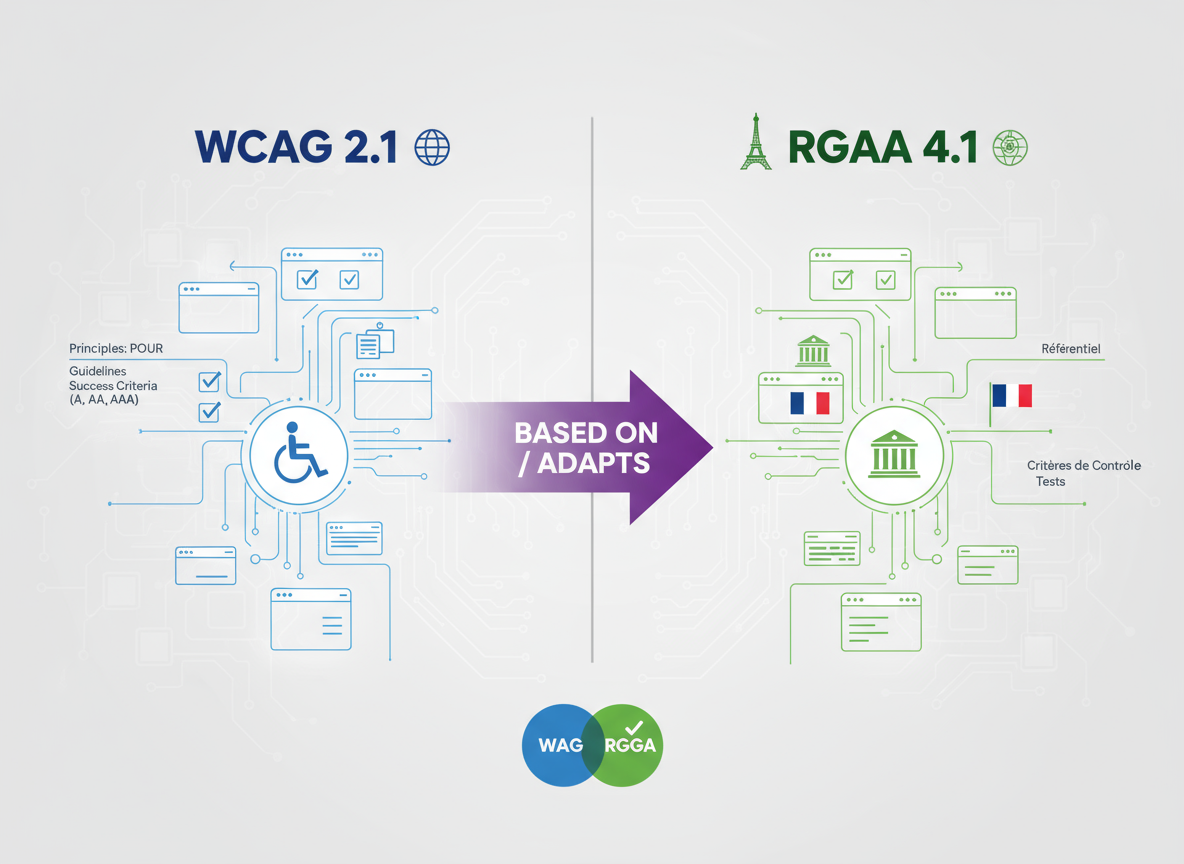 - In practice, you need both. RGAA builds on WCAG. Meeting RGAA generally means you already align with WCAG 2.1 AA, but not the other way around.